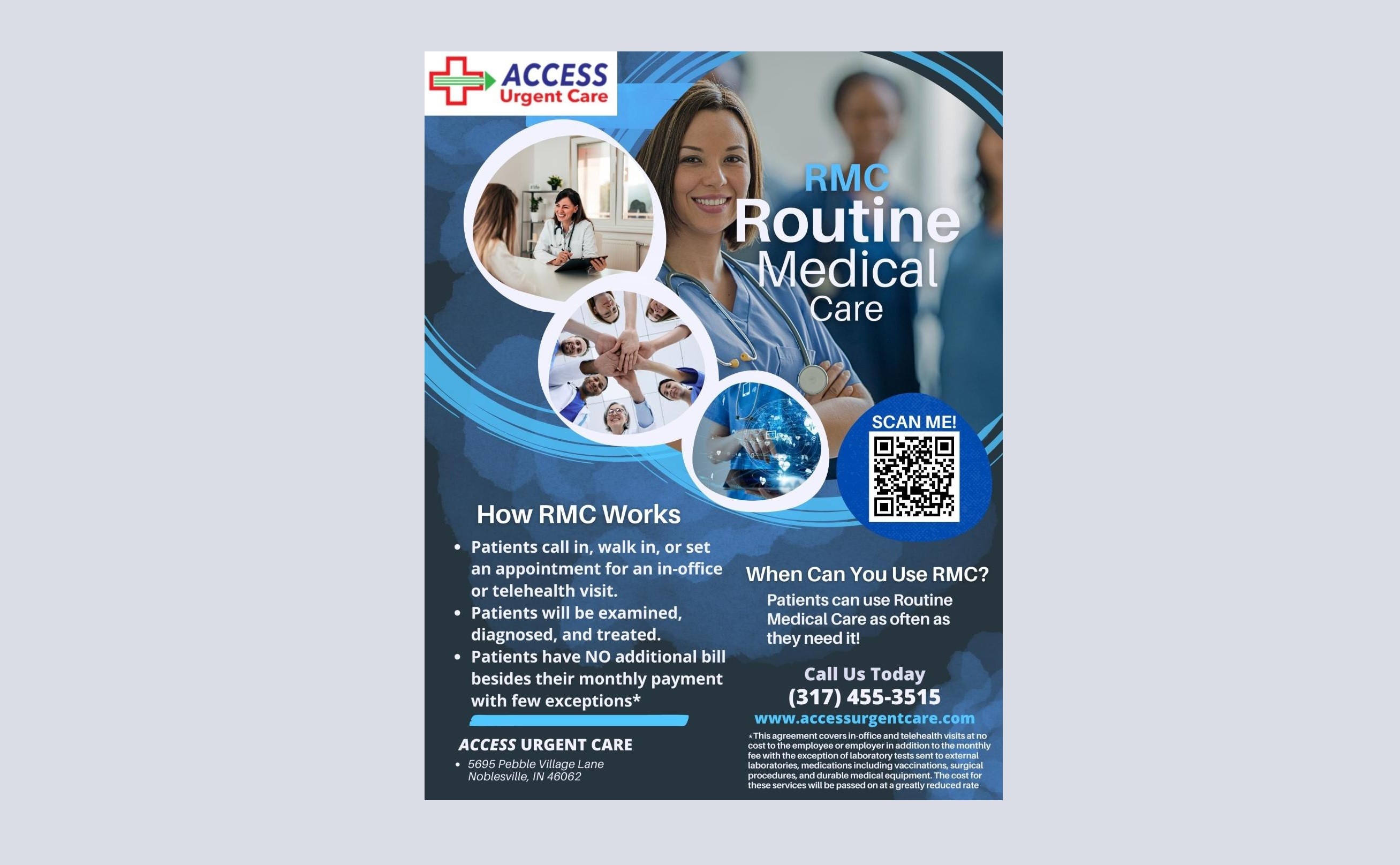 For more information about Routine Medical Care and their affordable healthcare solutions, please visit www.accessurgentcare.com or contact Brittany at 317-455-3515 or admin@accessurgentcare.com. About Routine Medical Care: Routine Medical Care (RMC) is a healthcare provider dedicated to offering cost-effective options for individuals and families. With a focus on accessibility and affordability, RMC provides comprehensive care through in-office and telehealth visits. By eliminating excessive costs and offering greatly reduced rates for additional services, RMC aims to make healthcare accessible to all. For more information, please visit https://accessurgentcare.com/contact-us/