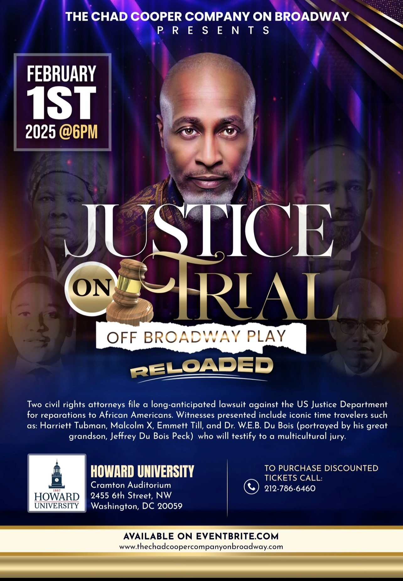 Chad Lawson Cooper's Justice on Trial: Reloaded set for Feb 1, 2025, at Howard University's Cramton Auditorium.
