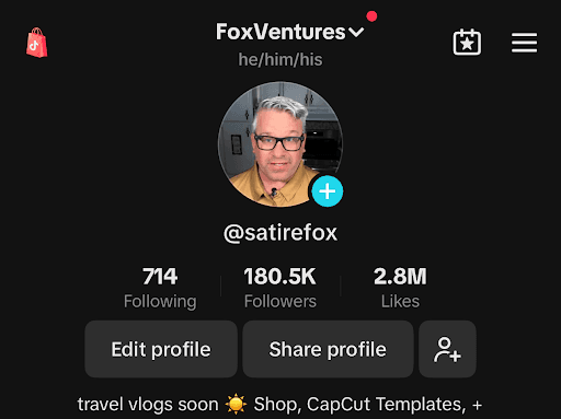For more information about Gary Mitchel Fox and his work, visit his TikTok profile at satirefox and his YouTube channel at foxventures.
