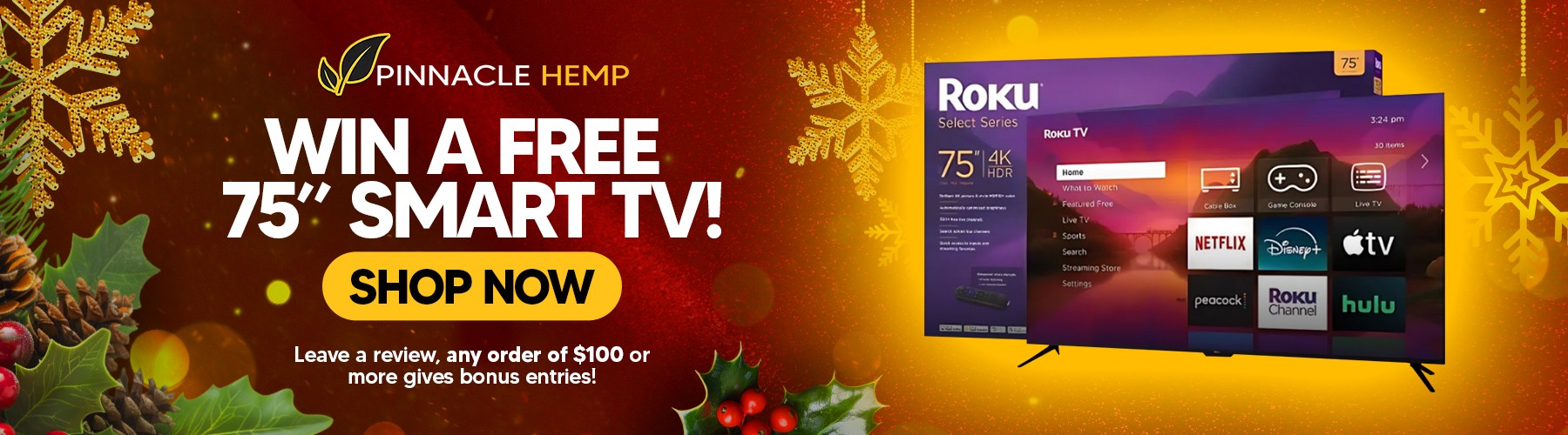Pinnacle Hemp Launches Giveaway: Win a 75" Smart TV by Leaving a Review—Enter Now Through December 30!