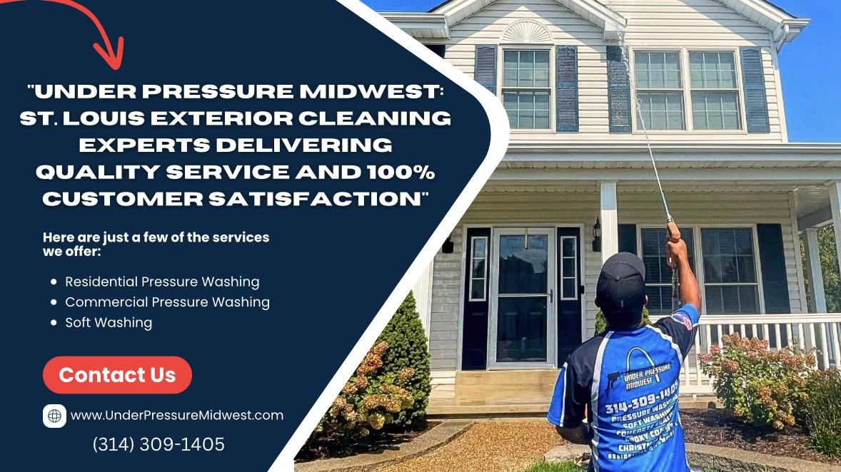 Specializing in residential and commercial soft washing and pressure washing, Under Pressure Midwest is dedicated to providing top-notch services that leave properties looking clean and refreshed. With a focus on attention to detail and using the latest technology and techniques, the team at Under Pressure Midwest ensures that every job is completed to the highest standards. "We understand the importance of maintaining a clean exterior for both residential and commercial properties," said a spokesperson for Under Pressure Midwest. "Our goal is to exceed our customers' expectations and provide them with a service that they can rely on." Whether it's cleaning a home's siding, a commercial building's exterior, or a driveway or patio, Under Pressure Midwest has the expertise and equipment to get the job done efficiently and effectively. The company prides itself on its professionalism, reliability, and dedication to customer satisfaction. For a free quote or to learn more about Under Pressure Midwest's services, interested individuals can contact them at (314) 309-1405. They can also follow the company on Facebook at https://www.facebook.com/UnderPressureMidwest?mibextid=ZbWKwL or visit their website at https://www.underpressuremidwest.com/. About Under Pressure Midwest: Under Pressure Midwest is a St. Louis-based exterior cleaning company that specializes in residential and commercial soft washing and pressure washing. With a focus on quality service and 100% customer satisfaction, the company is dedicated to providing top-notch cleaning services to clients in the St. Louis area. Contact: Under Pressure Midwest Phone: (314) 309-1405 Website: https://www.underpressuremidwest.com/