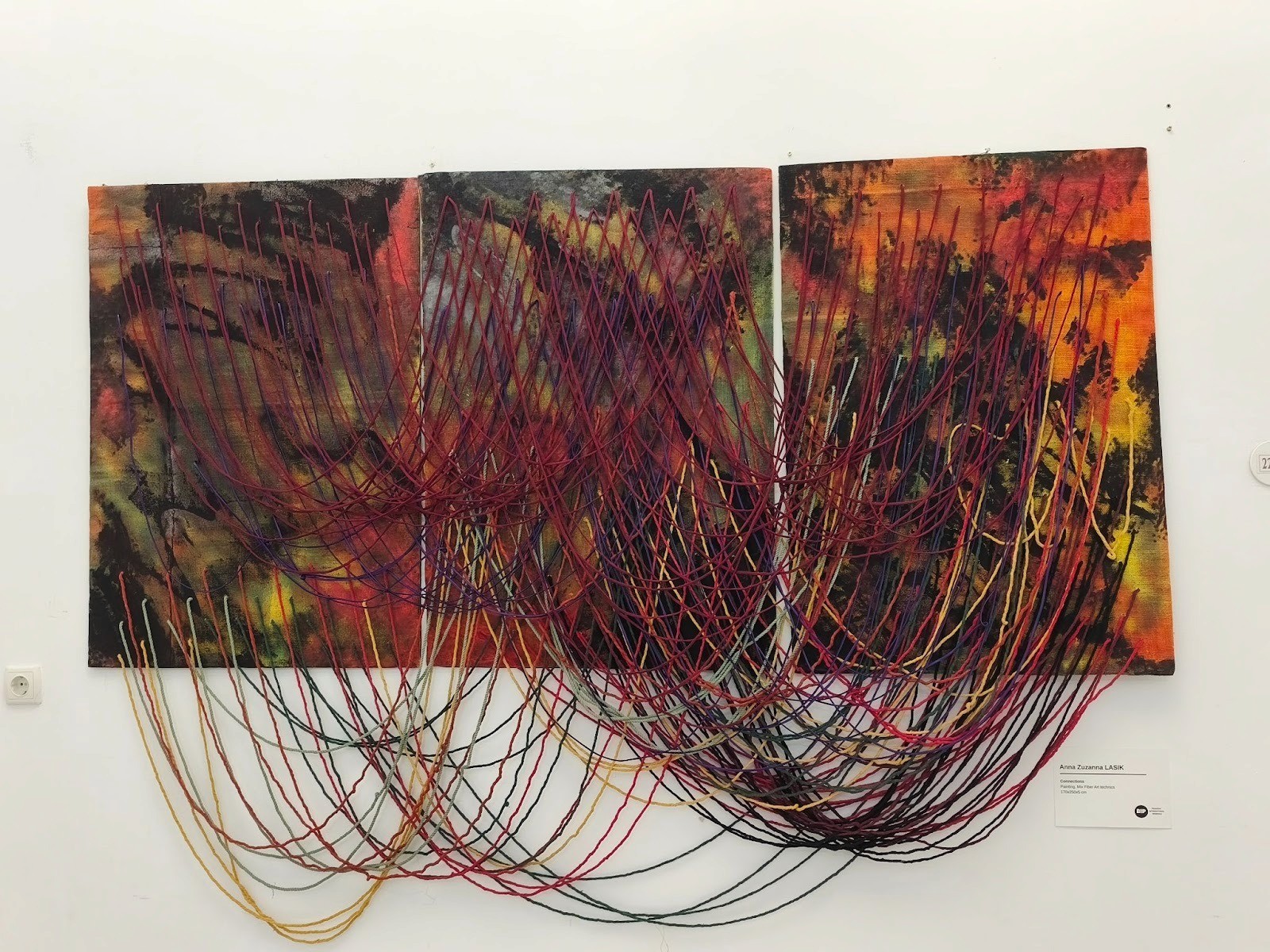 Lasik’s work does not sit comfortably within a single category. Acrylic painting merges with loom weaving, hand embroidery extends beyond the canvas, and collage and assemblage introduce depth and tactility. This layered approach mirrors the conceptual foundation of her practice: an interest in emotions, memory, ecology, and the structures - both visible and invisible - that shape human experience. From her studio in Warsaw, Lasik continues to explore how materials can carry meaning and how form itself can provoke reflection.