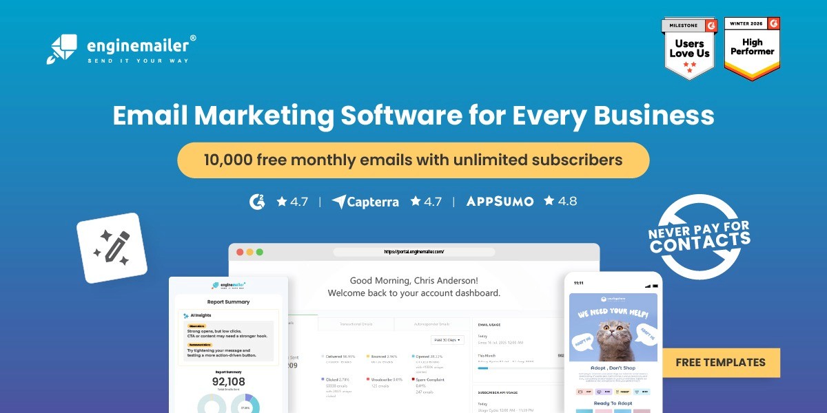 Enginemailer offers scalable, flexible email marketing with unlimited subscribers and usage-based pricing for growth.