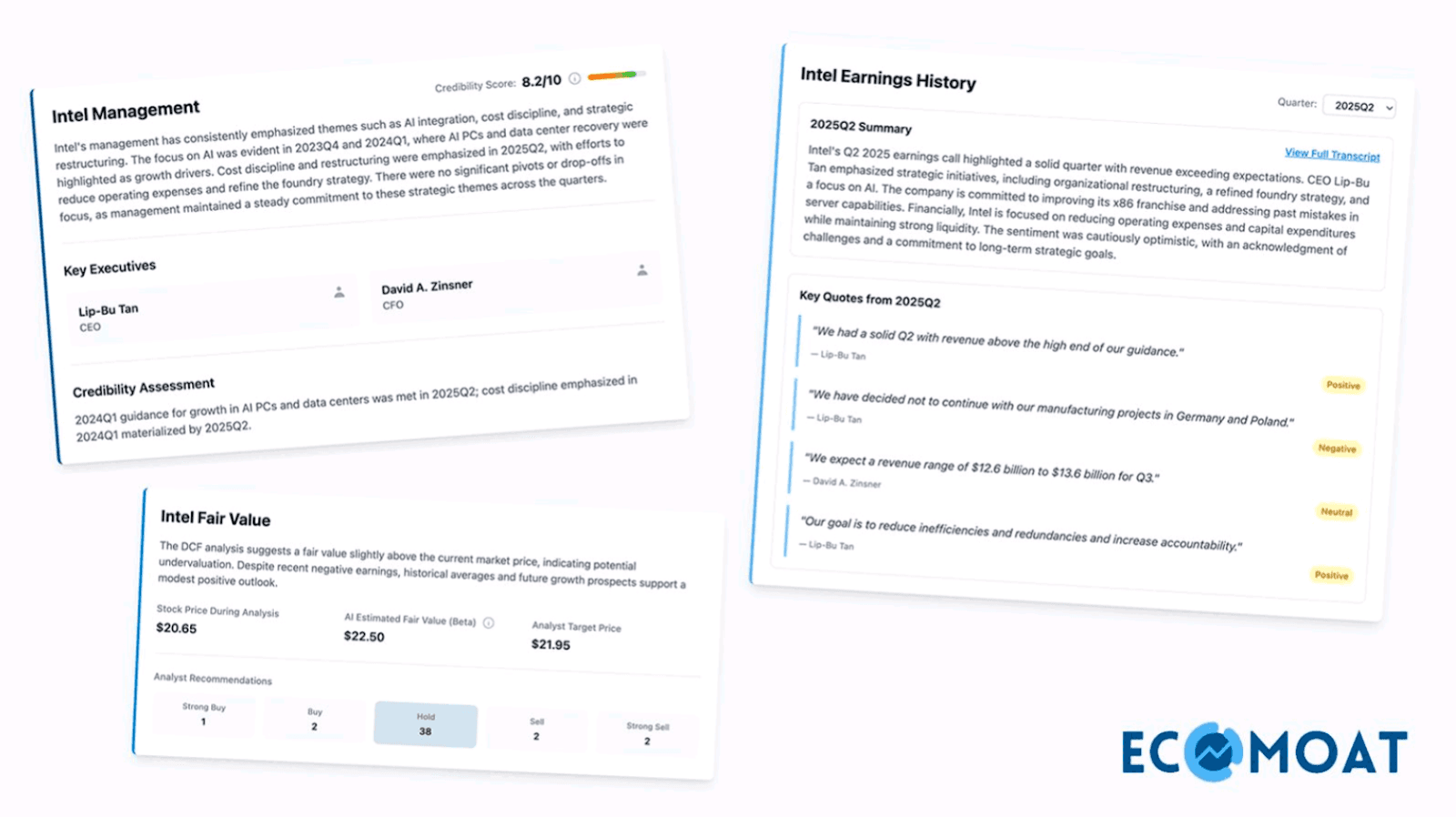 One example is EcoMoat’s management credibility scoring. The platform compares what management teams have said in past earnings calls with what the company later delivered, adding an accountability layer that traditional research often ignores. Or not being consistent about it.