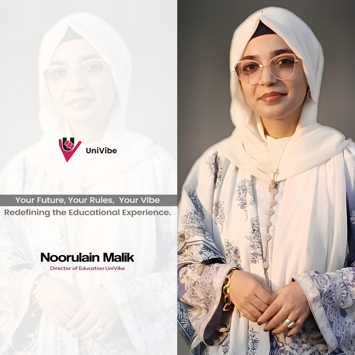 An essential part of UniVibe’s success is the invaluable support of Noorulain Malik, the Director of Education at UniVibe. Noorulain has been a source of great support and inspiration for Malik, bringing a unique perspective to the table. Her innovative approach to career counseling combines the best principles of academia with a deep spiritual insight, offering a truly holistic approach to students' academic and professional journeys.