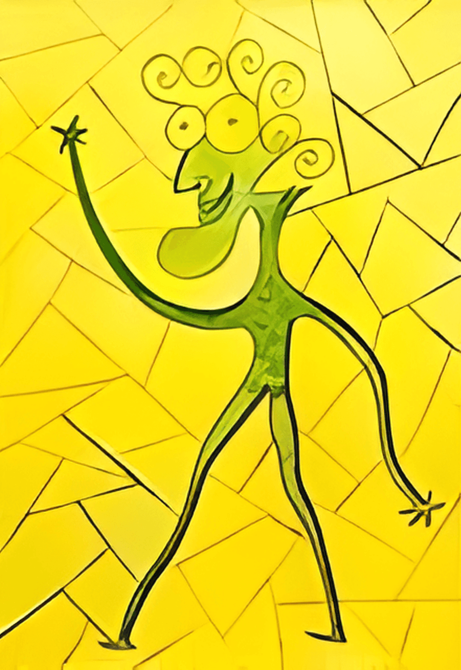 Minto’s visual language can be described as figurative and expressive, yet it resists simple categorization. Her figures are recognizable as human, but they often verge on the symbolic. Faces may appear distorted, bodies elongated or compressed, gestures exaggerated. These choices are deliberate, serving to amplify emotional states rather than depict physical accuracy.