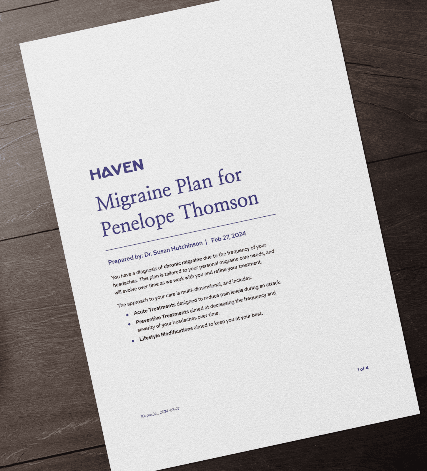 Haven Headache & Migraine Center blends personal experience and clinical expertise to offer people with migraine fast, continuous support and a new approach to care.