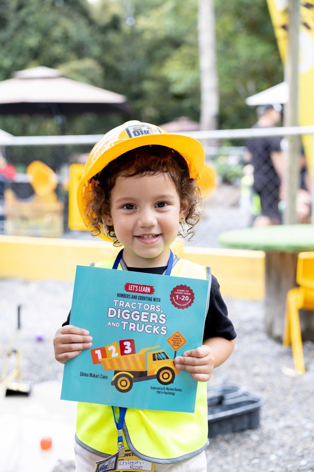 “Like many parents, I saw how excited my toddler was every time he saw a truck or digger,” Ghina recalls. “One day, while I was working on another book, he said, ‘Mama, Mama, I want four diggers and five trucks!’ And just like that, an idea was born. I realized I could turn his passion for machines into a valuable learning tool.”