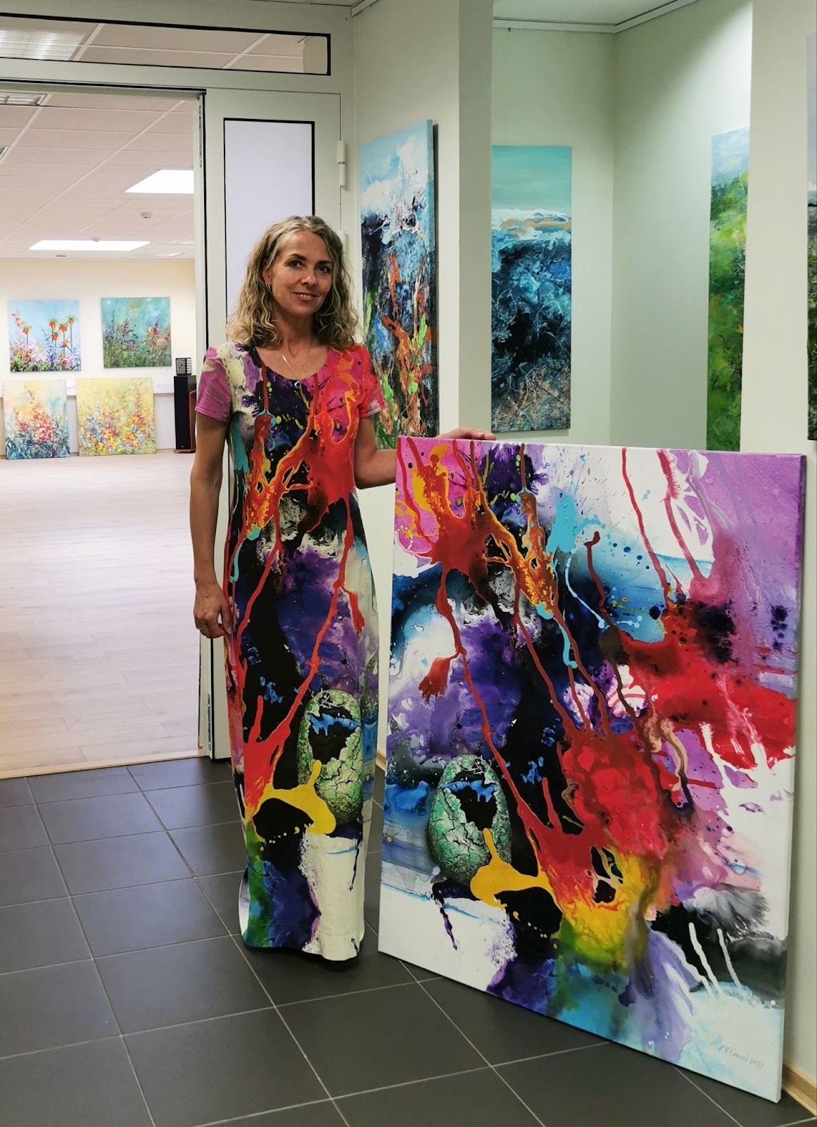 The second exhibition, held in August at the Viljandi City Gallery, will showcase a different facet of her creative output: her abstract paintings and her collection of designer clothing. This exhibition will highlight the culmination of her journey - a seamless integration of the "beyond words" abstraction she loves and the tangible, wearable art she creates.