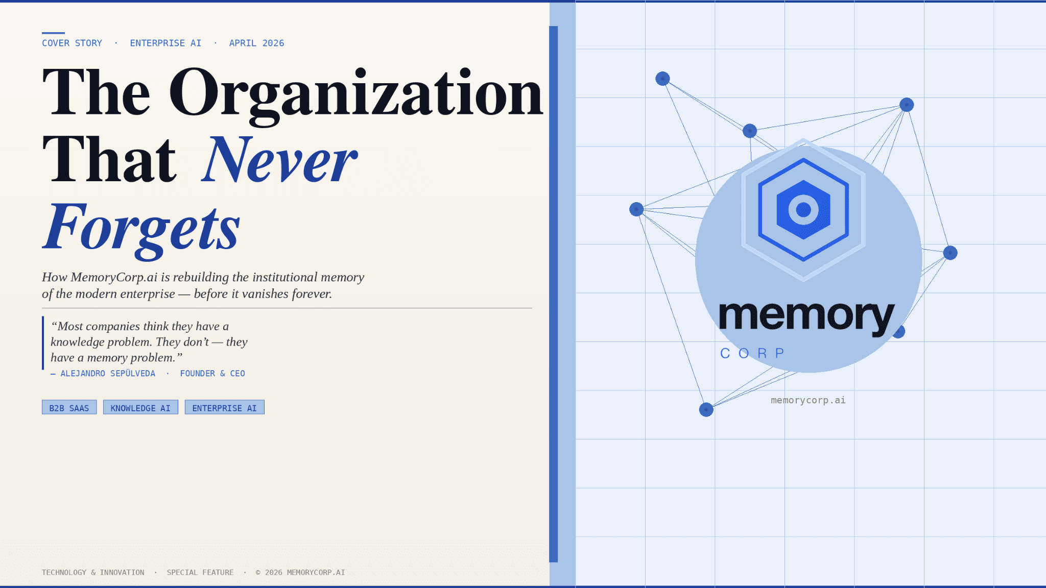 Alejandro Sepúlveda, Founder and Chief Executive Officer of MemoryCorp.ai, describes it clearly.