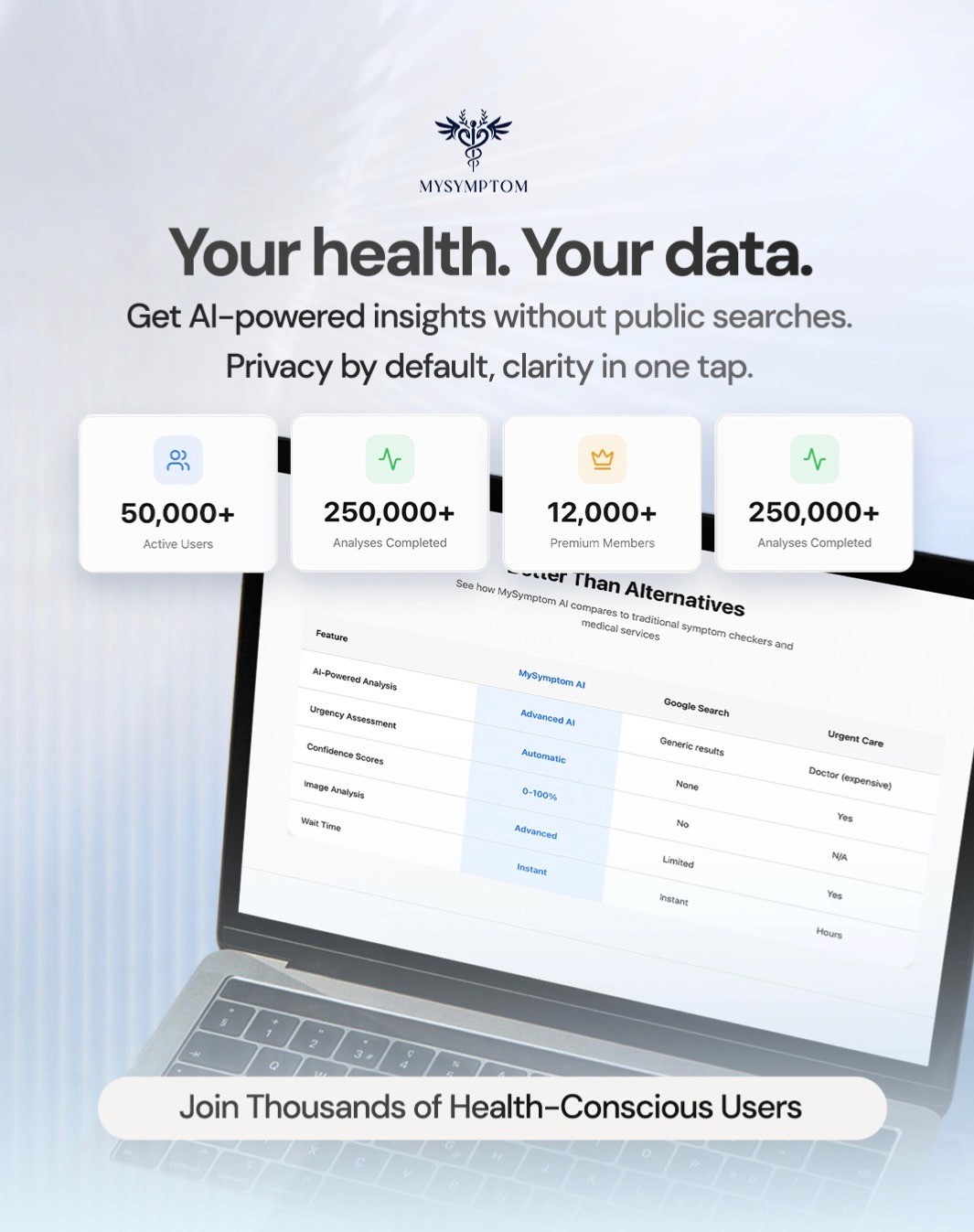 MySymptom.AI is designed to make healthcare more affordable and accessible to everyone. Too often, medical advice and interpretation come with a hefty price tag or are inaccessible due to long wait times and complicated procedures. MySymptom.AI is built to be affordable, private, and easy to use, making it a practical first step for anyone who feels overwhelmed or confused by their health data.