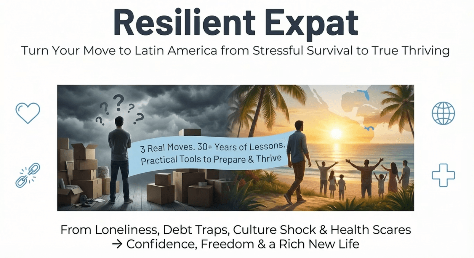 Moreover, the courses are designed to be flexible, catering to the unique needs of individuals seeking financial stability and expatriates adjusting to life abroad or preparing to move for the first time. For example, the Resilient Expat course provides specific guidance for individuals relocating from the U.S. to Latin America, including cultural, financial, emotional, and legal considerations that are relevant to the region.