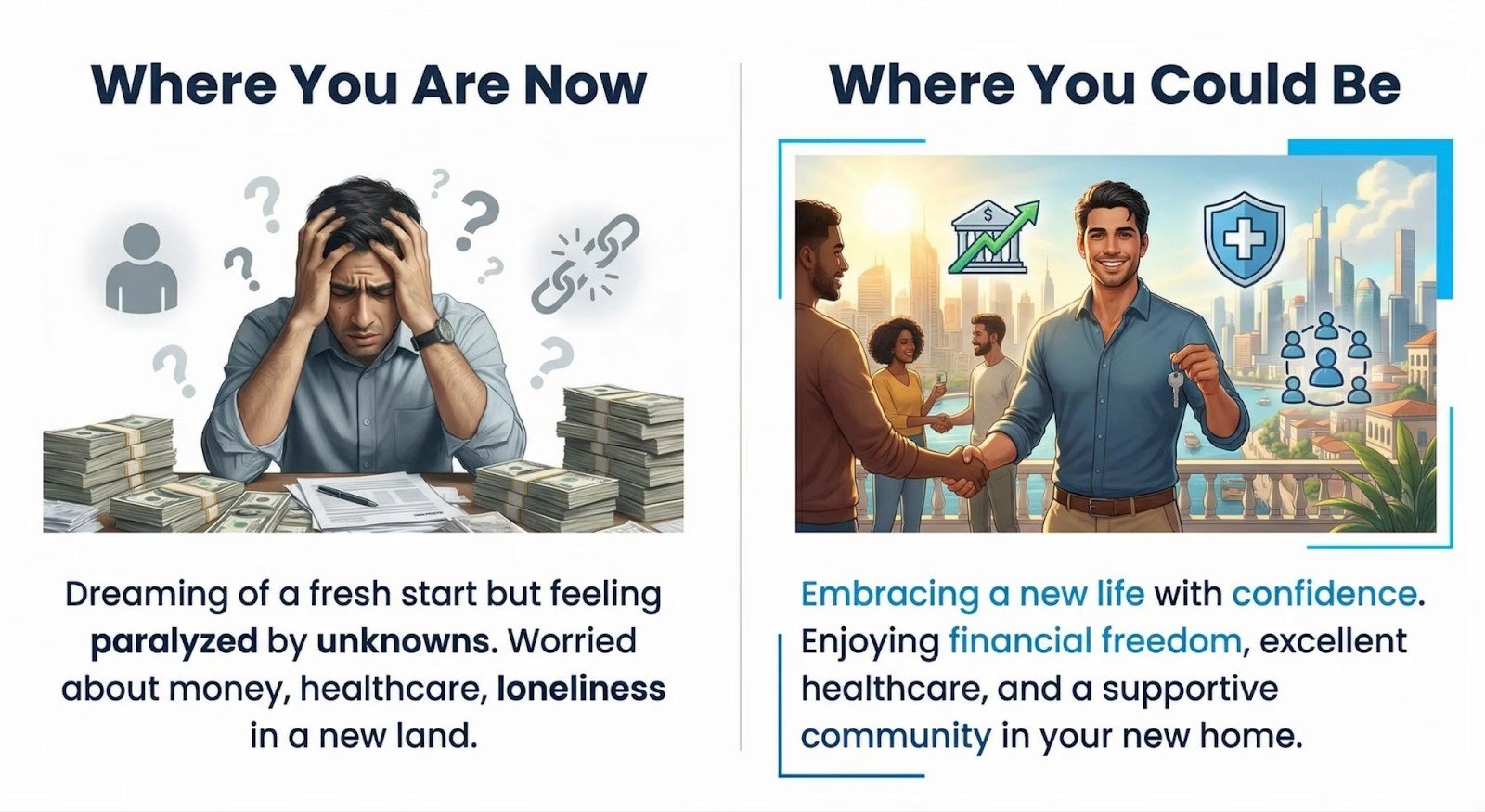 “I’ve experienced the stress of moving to new countries, dealing with financial and emotional instability, and wondering how to adapt. That’s why I want to help others avoid these hurdles,” Andreas shares. “Having a stable financial foundation allows you to focus on personal growth and successfully integrate into new environments.”