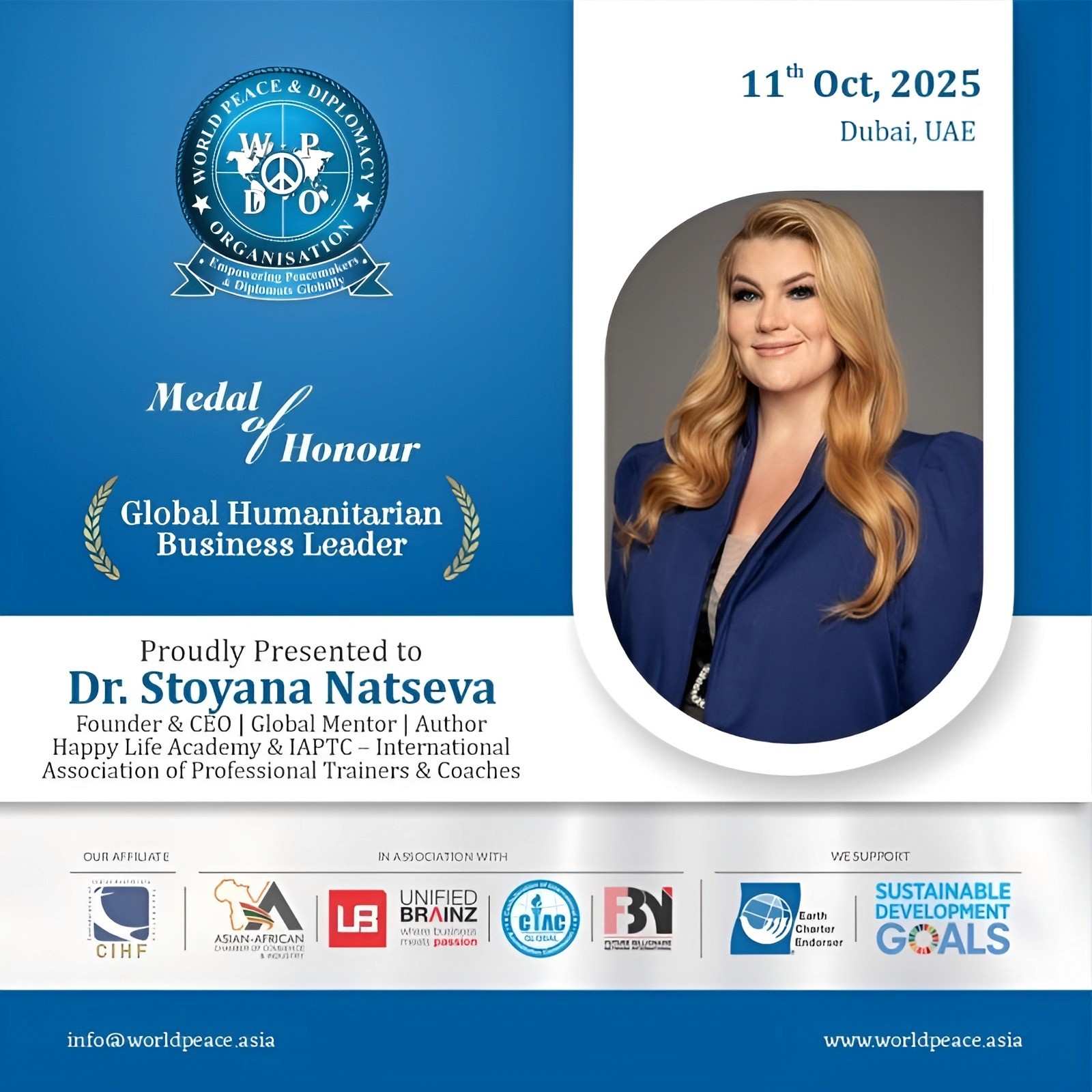 NATIONWIDE - DECEMBER 2025 - (USAnews.com) — In a world where business often intersects with the need for social good, Stoyana Natseva has carved out a space where personal empowerment and global change go hand in hand. Her dedication to fostering personal growth and spreading positive change has earned her a spot among the most influential humanitarian business leaders. The recent recognition of Stoyana as the recipient of the prestigious Medal of Honour as a Global Humanitarian Business Leader 2025 by the World Peace & Diplomacy Organisation is a testament to the powerful impact of her work.