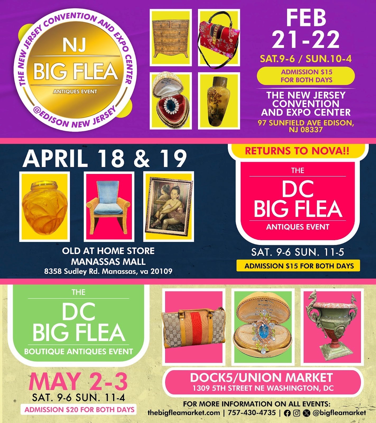 For shoppers who want to experience the magic of The Big Flea Market, don’t miss the upcoming events. With shows in Edison, NJ, Manassas, VA, and Washington DC, there’s no better time to experience the thrill of the hunt and uncover that one-of-a-kind treasure waiting for you.