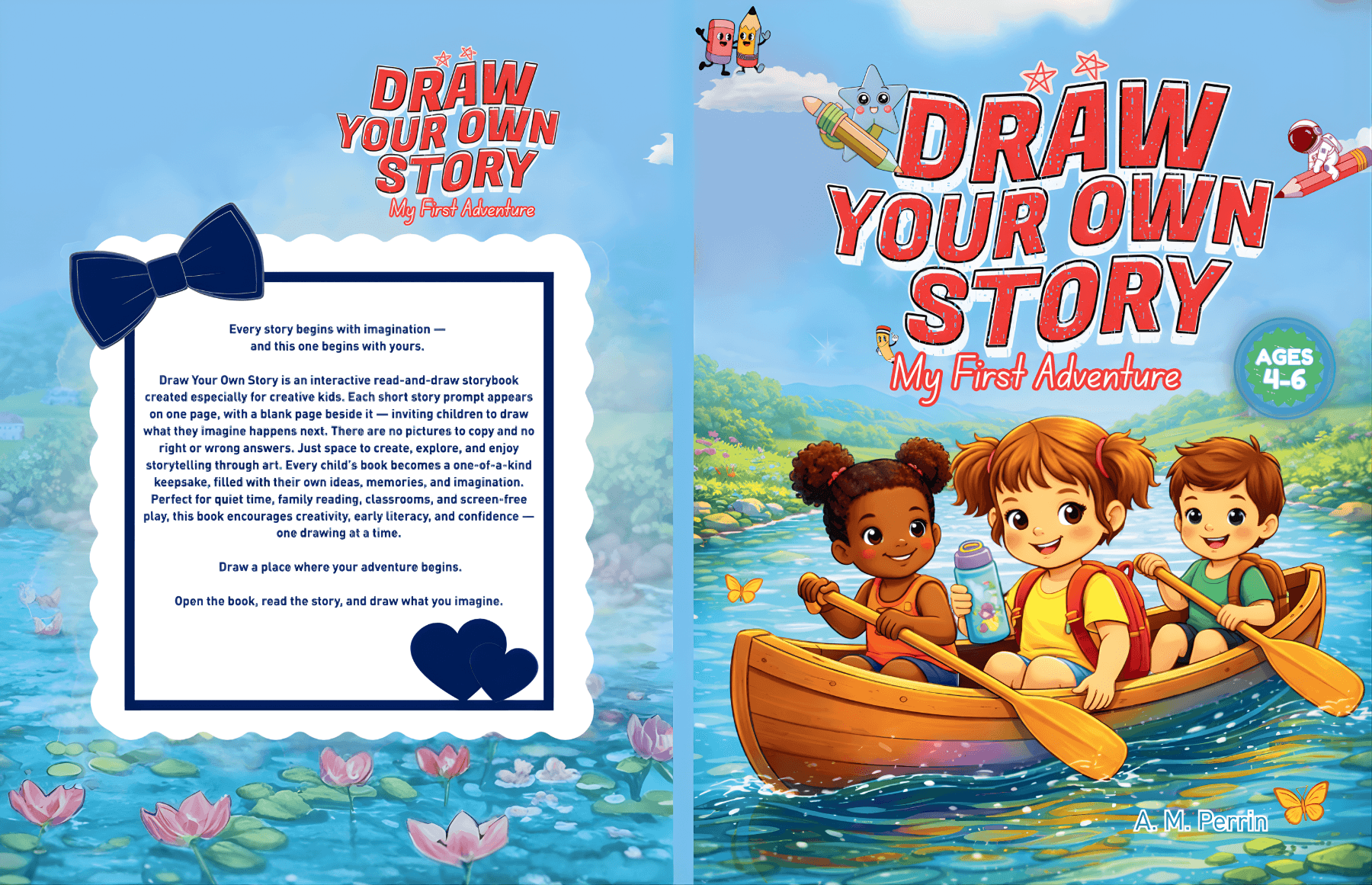 This is the defining moment behind the Draw Your Own Story series by A. M. Perrin, a quietly transformative approach to children’s books that shifts the role of the child from passive reader to active creator.