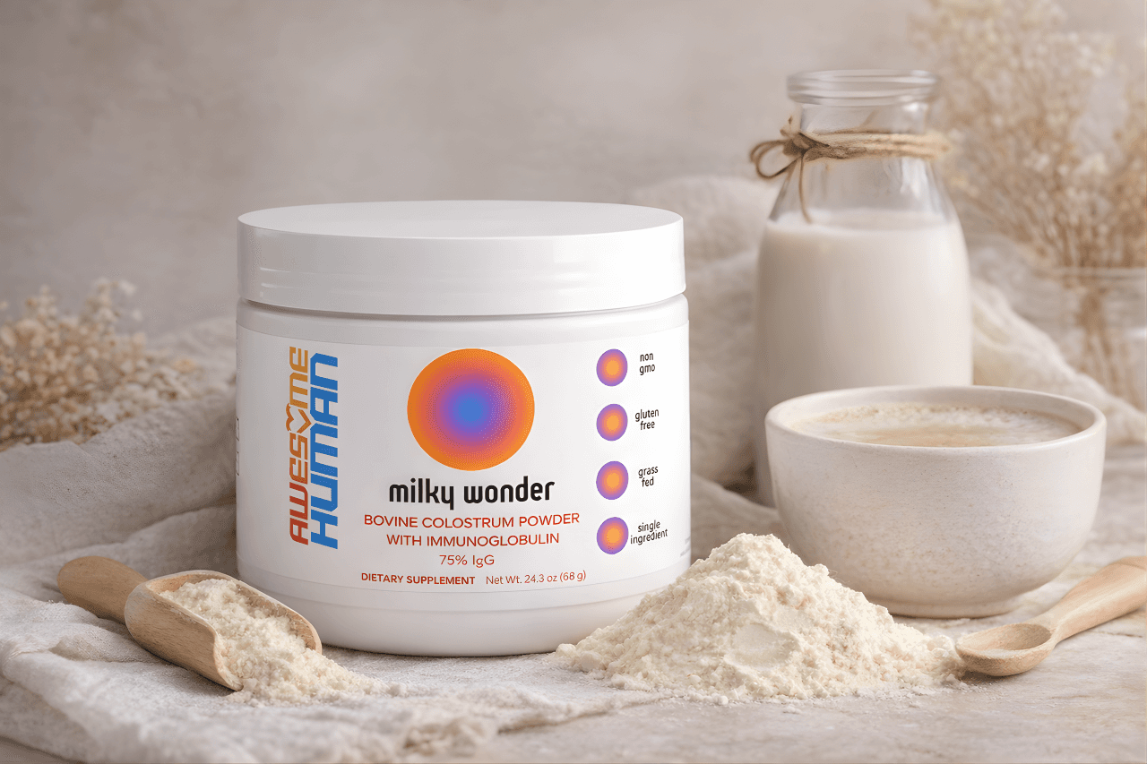 Colostrum is most commonly available in powdered supplement form, making it easy to incorporate into daily wellness routines through smoothies, coffee, or simple water blends. One example is Milky Wonder Colostrum Powder from Awesome Human, a single-ingredient bovine colostrum supplement made in the USA and formulated without fillers, flavors, or unnecessary additives. Naturally rich in immunoglobulins, growth factors, and bioactive peptides, colostrum has been studied for its potential role in supporting immune health, gut barrier function, and post-exercise recovery. While scientific research on colostrum continues to evolve, current findings suggest it is well tolerated and generally safe for most adults, making it an increasingly popular option among consumers seeking clean, food-based supplements. As interest grows in minimally processed, nutrient-dense wellness products, colostrum stands out as a practical and research-supported addition to a holistic health approach.